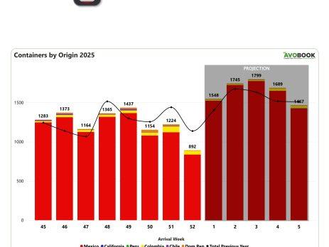 El cierre de la semana 1 en el mercado de aguacates de Estados Unidos refleja un panorama de contrastes y tendencias clave para lo que promete ser un año desafiante. Con un total de 915 contenedores y camiones enviados, el volumen mostró una leve mejora del 3% respecto a la semana anterior. Sin embargo, al compararse con el mismo periodo de 2024, la caída es clara, con un descenso del 35%.