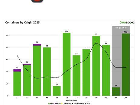 El mercado chino del aguacate mostró esta semana señales de desaceleración, con una caída tanto en el volumen de embarques como en los precios. Desde Perú llegaron 84 embarques, lo que representa una disminución del 15% en comparación con la semana anterior. A pesar de esta baja, el volumen sigue siendo un 17% superior al registrado en la misma semana del año pasado, lo que sugiere que, aunque la demanda persiste, el ritmo no es tan estable como se esperaba.