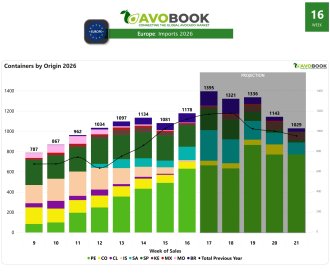 Perú registró 952 embarques en la semana 15, con Europa como principal destino y una participación de 53% en el mercado europeo.