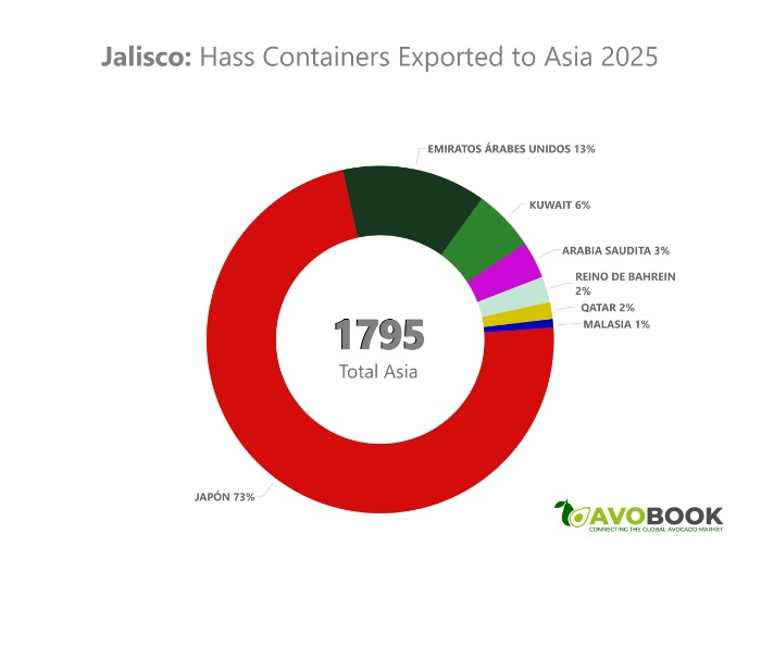Asia se consolida como segundo destino del aguacate de Jalisco en 2025, aunque EE.UU. mantiene el liderazgo con amplia diferencia en volumen.