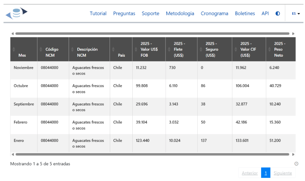 Brasil siguió enviando 3 a 4 carretas por semana a Argentina, a Uruguay 1 por semana y hubo un embarque a Chile también, para Diciembre espera que aun tengamos mas 2 embarques total a Chile y 3 cargas por semana a Argentina…para los demás países los envíos son de aguacate Tropical y no Hass