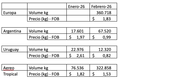Febrero fue un mes de menos volumen, pues hubo poca fruta en condiciones de madurar bien.