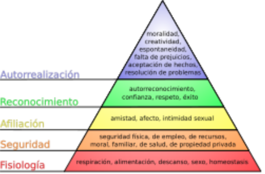 La tesis central de la pirámide de las necesidades, que ha tenido aplicación en diversos campos incluso más allá de la psicología, expresa que los seres humanos tienen necesidades estructuradas en diferentes estratos, de tal modo que las necesidades secundarias o superiores van surgiendo a medida que se van satisfaciendo las más básicas.