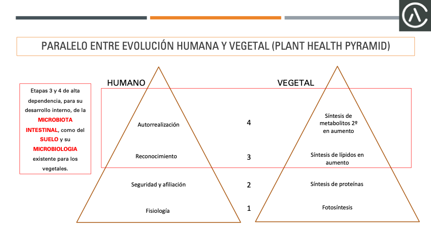 Analogía entre jerarquías de necesidades humana y vegetal, para lograr productividad