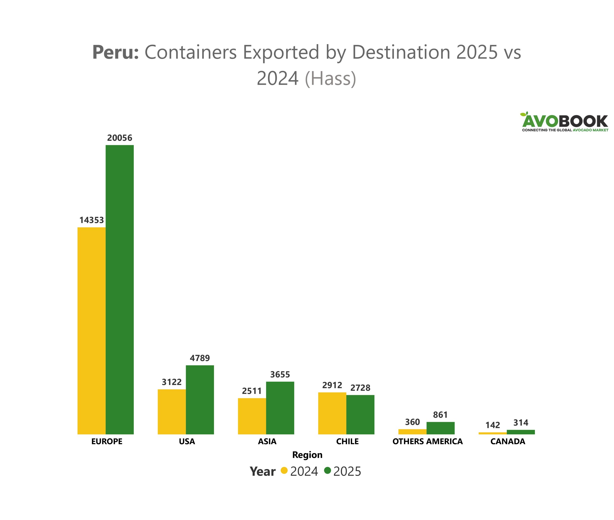 Desde esta perspectiva, Avobook confirma que Europa no solo concentró cerca del 62% de las exportaciones, sino que además Perú reforzó su liderazgo, aumentando su participación dentro del total europeo desde 40% en 2024 hasta 47% en 2025. En Estados Unidos, el crecimiento de 53% en volumen se tradujo también en una mayor participación relativa, aunque en un mercado donde México continúa marcando el pulso del abastecimiento.