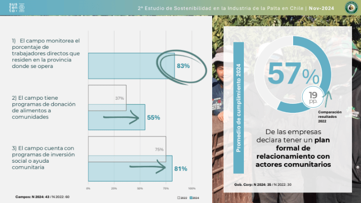El Comité de Paltas de Chile inició hace siete años un plan que hoy le permite mostrar resultados exitosos en iniciativas de reducción del consumo hídrico, eficiencia energética y relacionamiento de las empresas con las comunidades, entre otros compromisos públicos hechos por sus socios