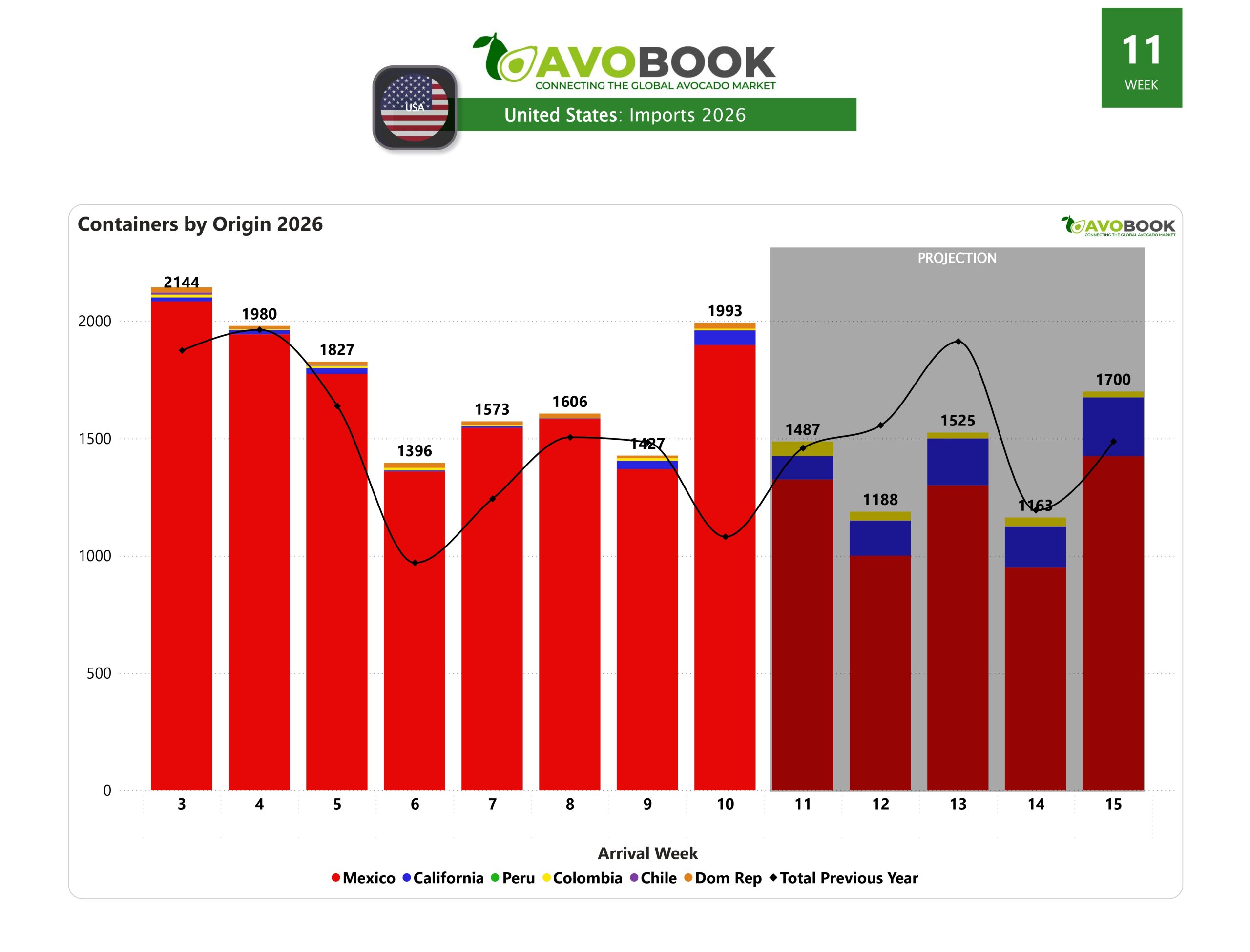 EE. UU. alcanza 1.993 embarques en la semana 10, con México concentrando el 95% del suministro