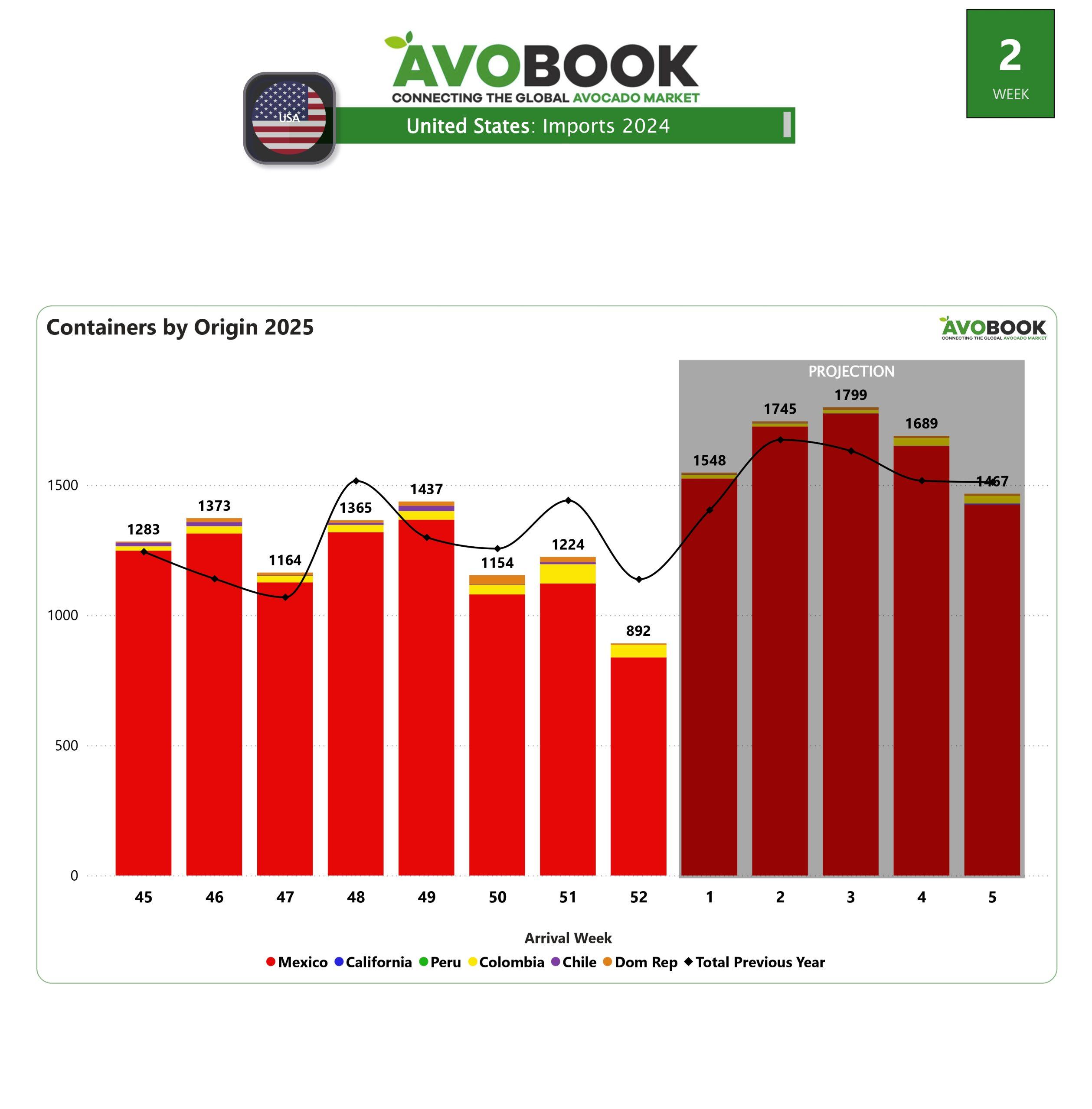 A pesar de la ligera mejora en el volumen general, las primeras semanas del año son tradicionalmente cruciales para definir las dinámicas de mercado en el periodo previo al Super Bowl, un evento que históricamente dispara la demanda de aguacates en Estados Unidos.El desarrollo de la semana 2 será clave para entender si las tendencias actuales se consolidan o si habrá cambios significativos en la dinámica del mercado.
