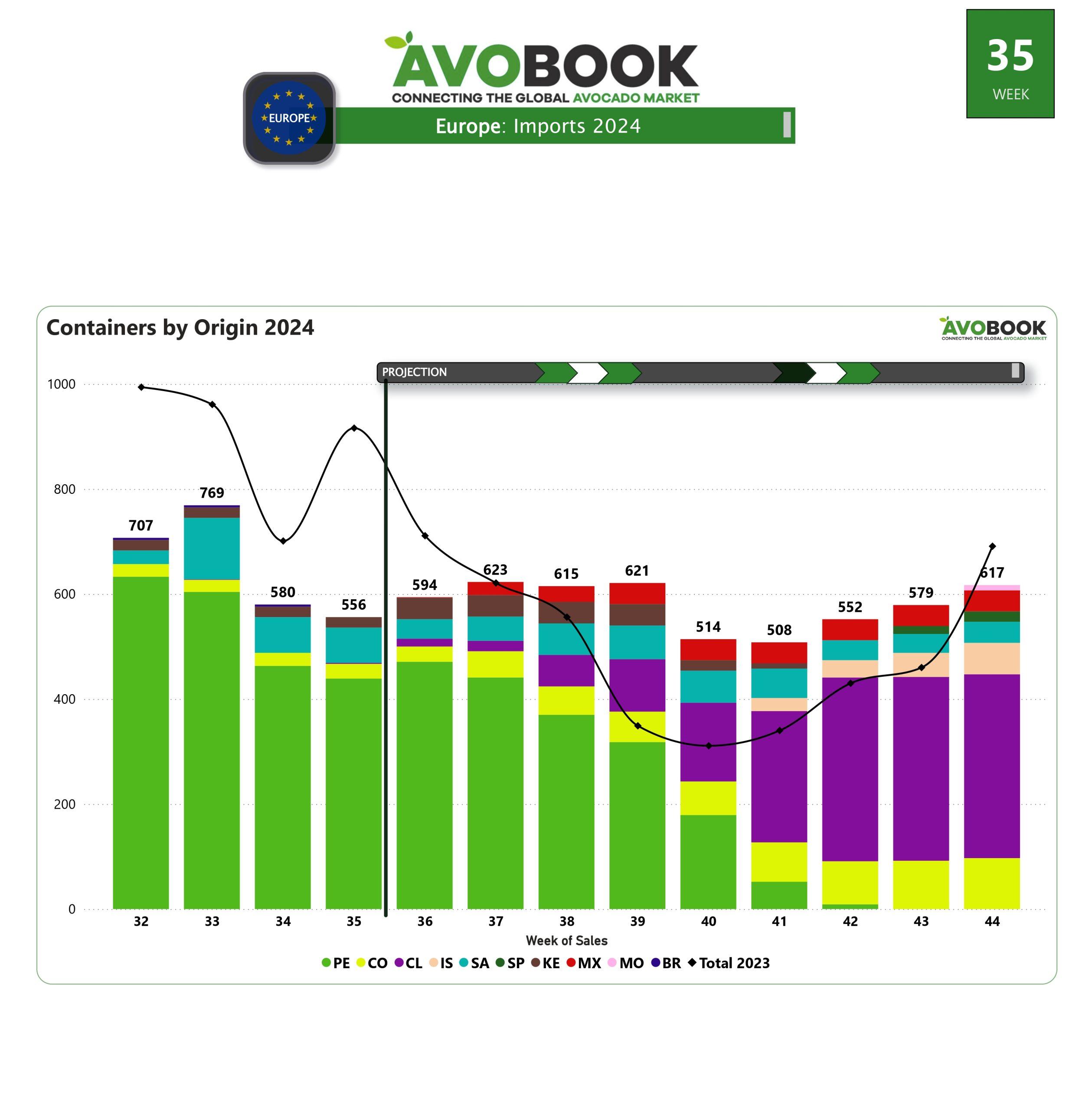 Recuerda que el detalle de cada cifra y la evolución semanal de los movimientos del mercado mundial del aguacate en todos los mercados y orígenes, se encuentra en el Reporte Avobook Premium de la Semana 35.