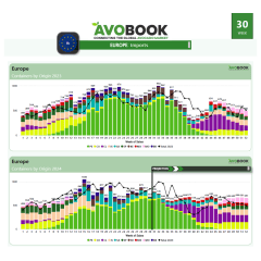 El Reporte Avobook Premium detalla cómo los aguacates arribados a Europa muestran un volumen menor en la comparación semanal y anual; mientras en Estados Unidos México dispone de un 41% menos de hectáreas para corte; y por primera vez en el año China espera menos embarques que Japón