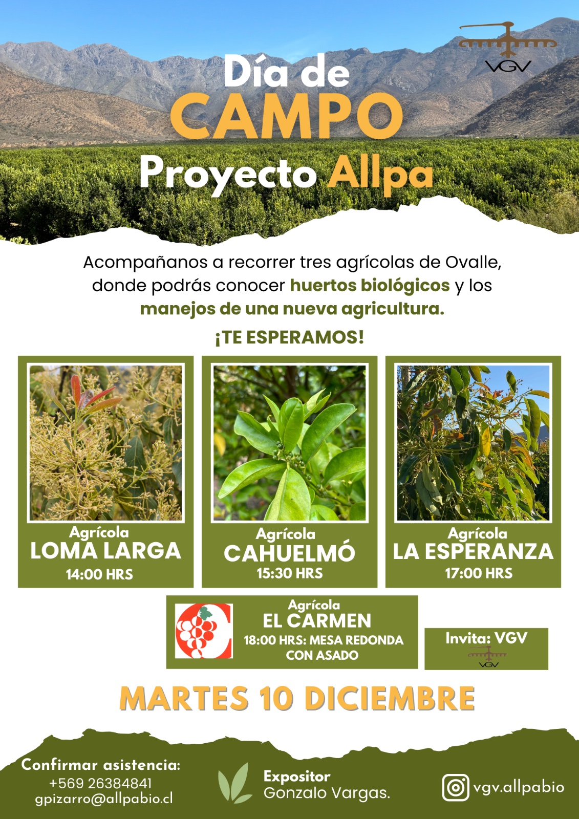 Para confirmar tu asistencia, comunícate al teléfono +569 26384841 o envía un correo a gpizarro@allpabio.cl. No pierdas la oportunidad de formar parte de esta jornada, que no solo promete aprendizaje, sino también un entorno de colaboración y disfrute del paisaje rural de Ovalle.
