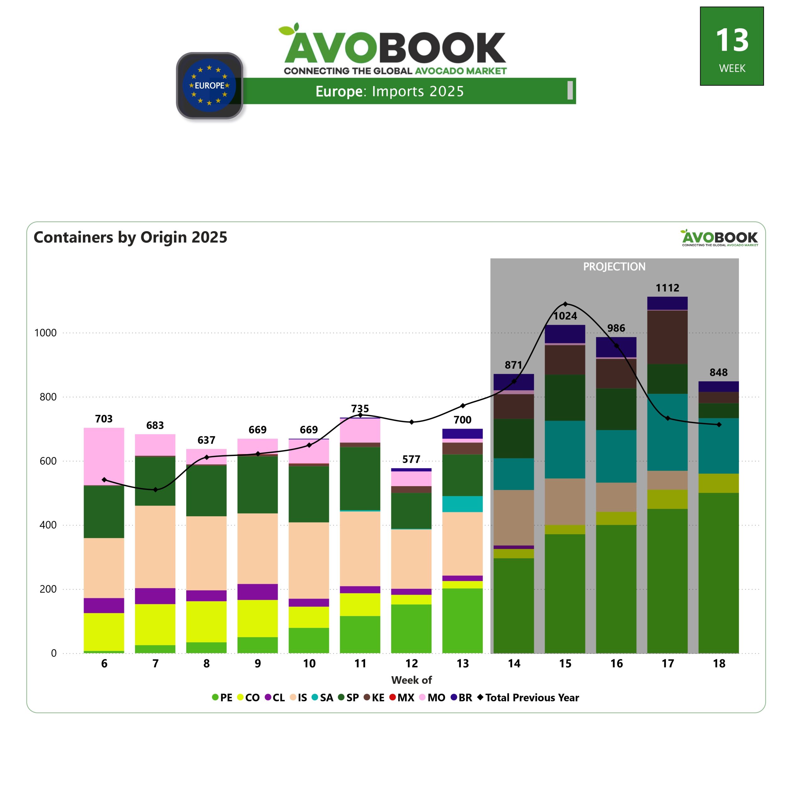 El mercado europeo cerró con la llegada de 700 embarques de aguacate, marcando un crecimiento del 21% en comparación con la semana anterior. Sin embargo, a pesar del repunte, el volumen sigue un 9% por debajo de los niveles registrados en el mismo periodo del año pasado.